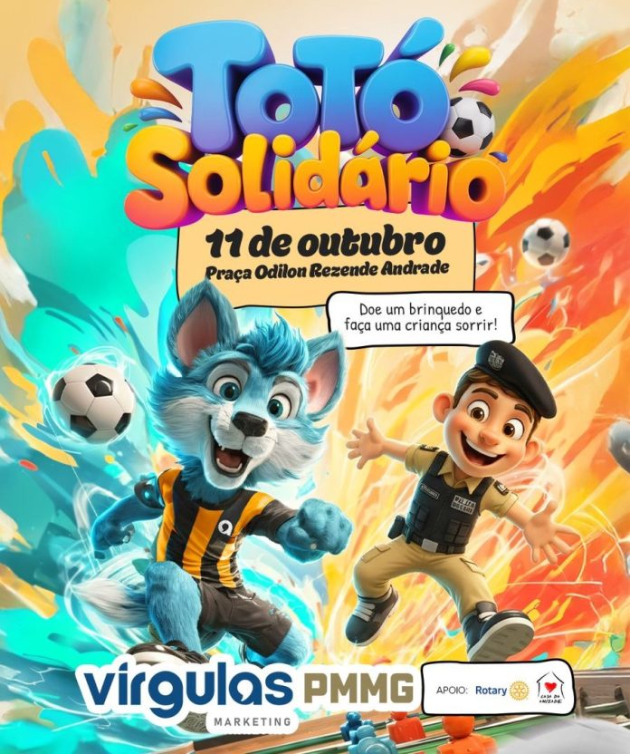 A Praça Odilon Rezende Andrade vai receber neste sábado, 11 de outubro, o Totó Solidário, evento que une lazer e solidariedade. A iniciativa arrecadará brinquedos que serão distribuídos para crianças do município em comemoração ao Dia das Crianças.