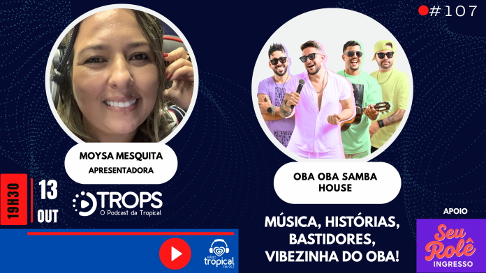 O Trops prepara uma edição mais que especial para os fãs de música e boas histórias. No dia 13 de outubro, às 19h30, o podcast recebe o grupo Oba Oba Samba House para um bate-papo descontraído, cheio de energia, lembranças e bastidores da trajetória de sucesso da banda que conquistou o Brasil.